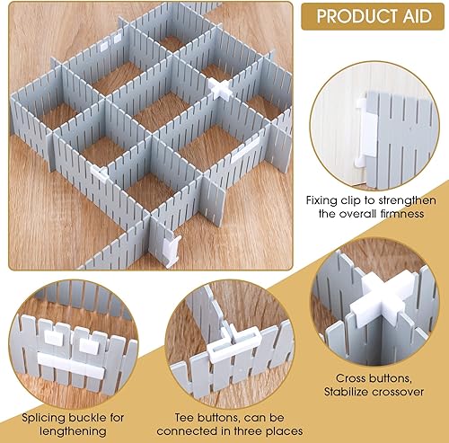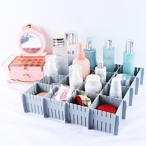 LWAIX DIY Organisateur de Tiroir diviseurs de tiroirs16PCS Séparateurs de Tiroirs Pour Fournitures de Bureau, Chambre à Coucher, Cuisine, Ustensiles de Maquillage(gris)