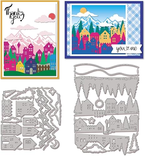 GLOBLELAND Matrice de Découpe de Maison de Montagne et D'Arbre en Métal pour la Décoration de Cartes le Scrapbooking DIY L'Album de Bricolage et la Décoration Artisanale