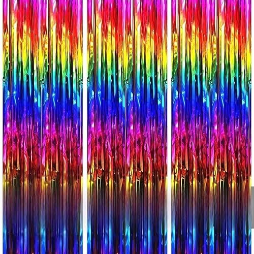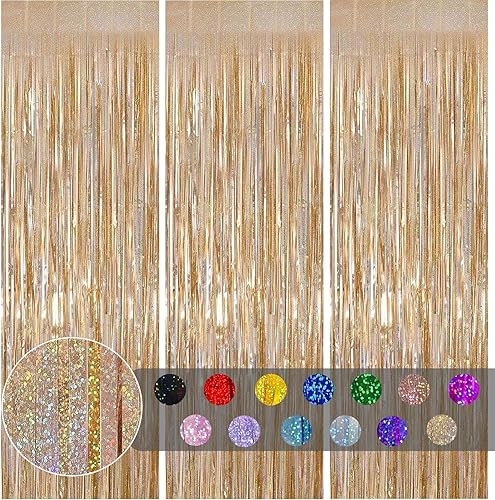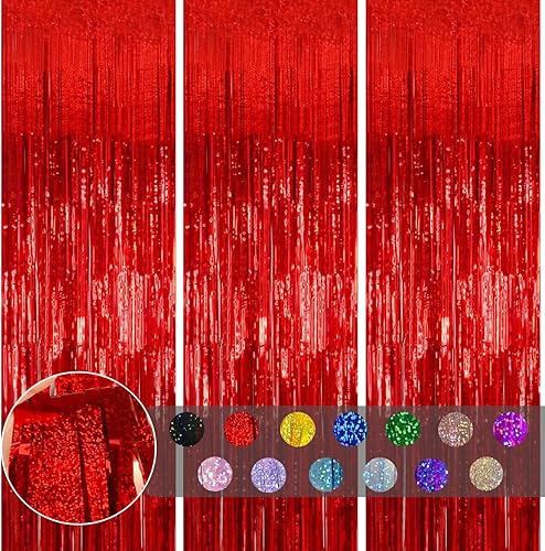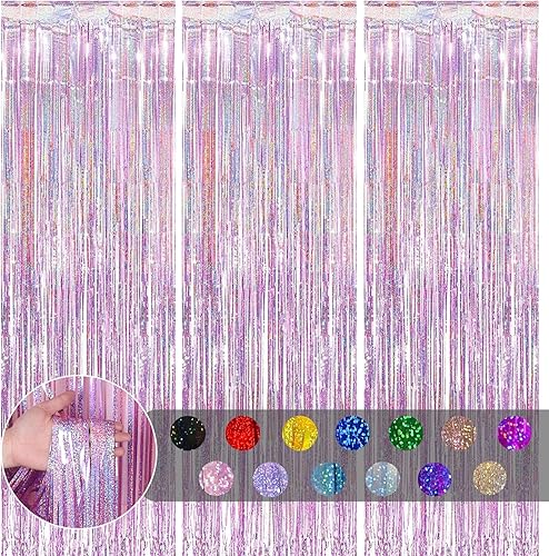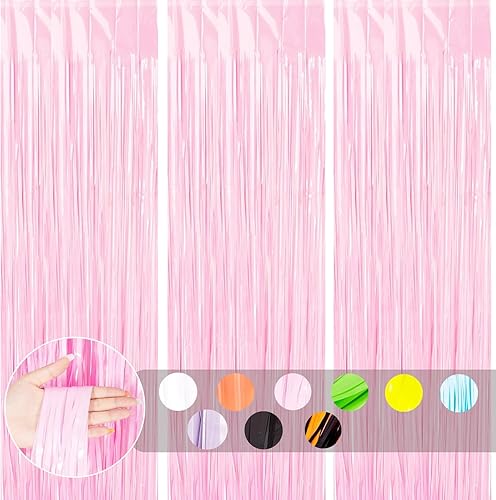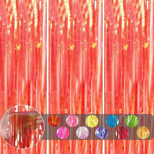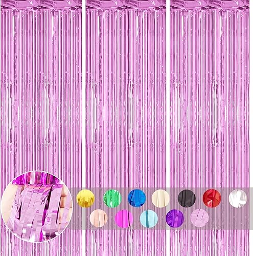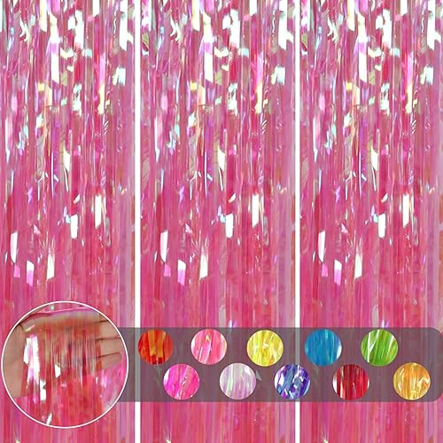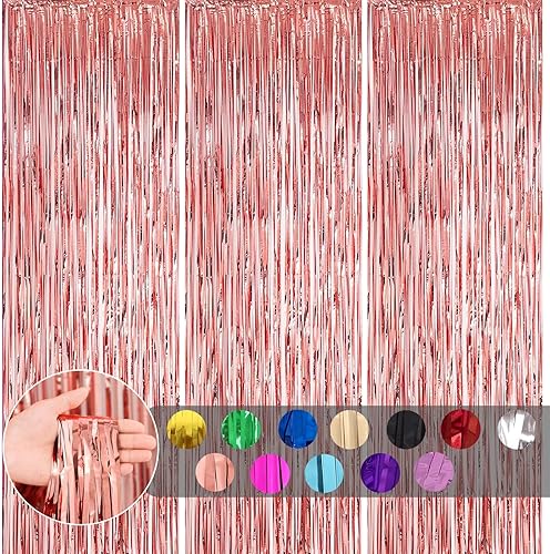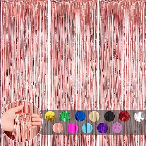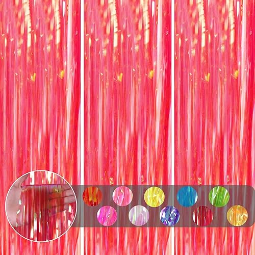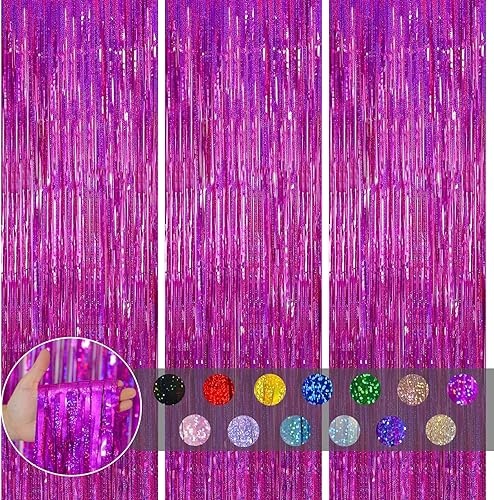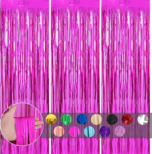 COSORO 3 pièces Rideau Métallique de Frange Rose Vif,1mx2m Scintillants Foil Rideau Shimmer Brillants Decoration Anniversaire Photo Fond,pour Deco Porte Fenetres,Disco,Scintillant Mariage,Maison,Fête