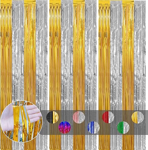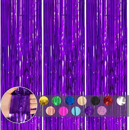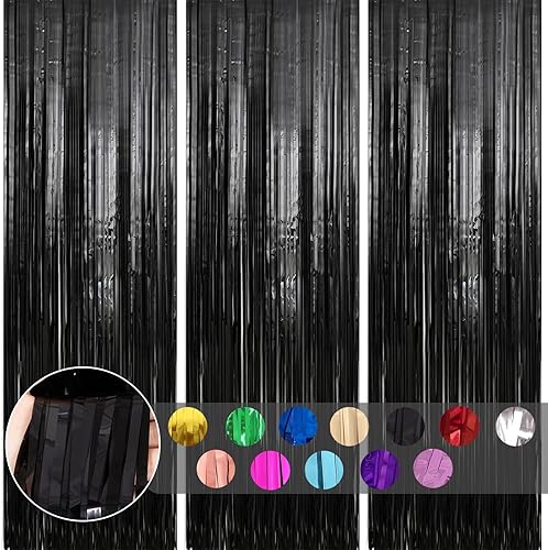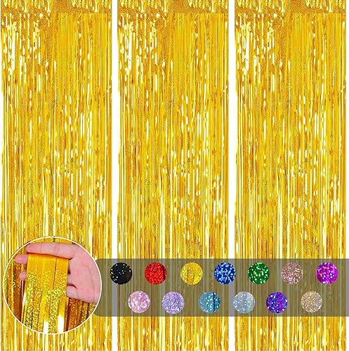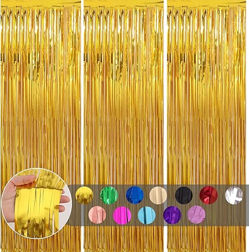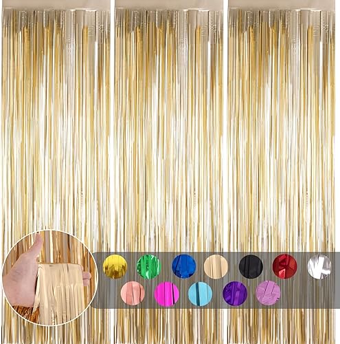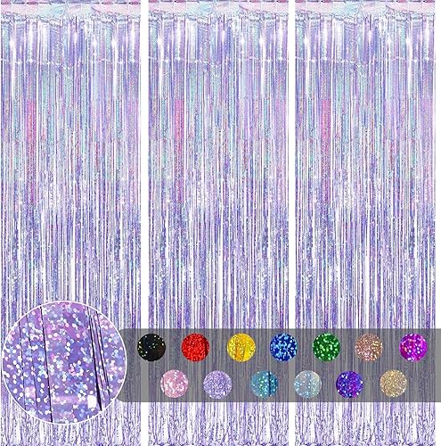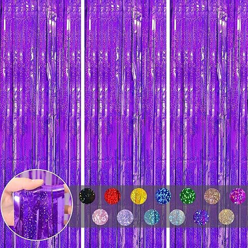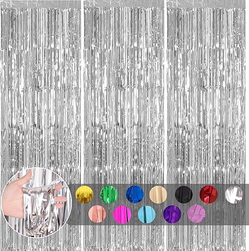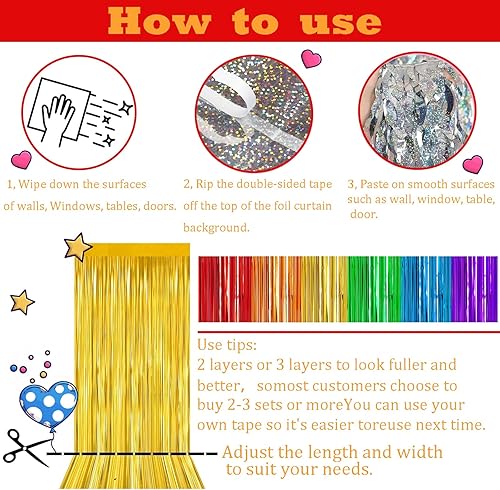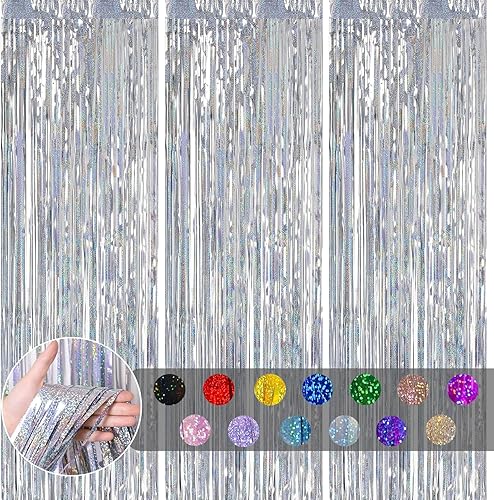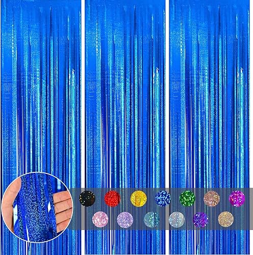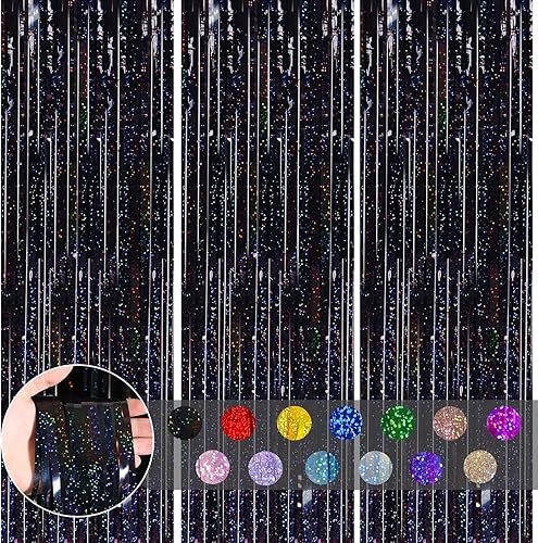 COSORO 3 pièces Rideau Métallique de Frange Rose Vif,1mx2m Scintillants Foil Rideau Shimmer Brillants Decoration Anniversaire Photo Fond,pour Deco Porte Fenetres,Disco,Scintillant Mariage,Maison,Fête