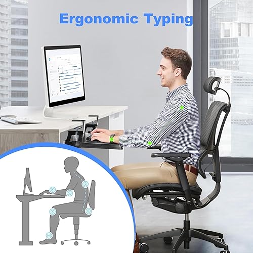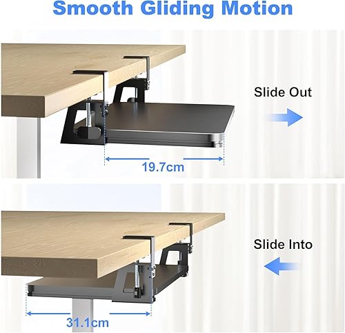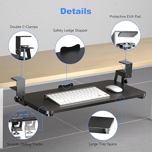 Plateau de clavier sous le bureau - Grande pince en C - 65,5 cm (75,6 cm avec les pinces) x 31,1 cm - Plateforme extensible pour ordinateur - Plateau coulissant pour clavier et souris - DSF4