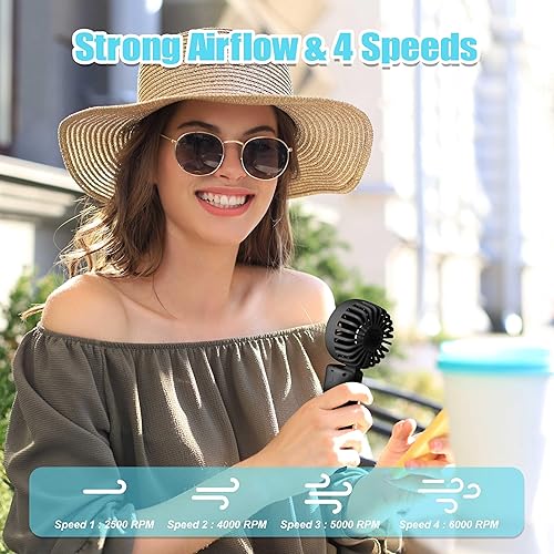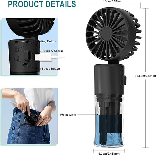 Frelisiy Ventilateur brumisateur portable multifonction pour mini ventilateur portable 1500 mAh 4 vitesses réglables, convient pour les femmes, la maison, le bureau, les voyages (noir)