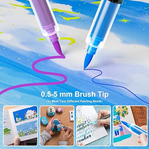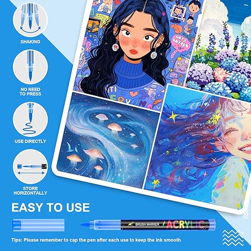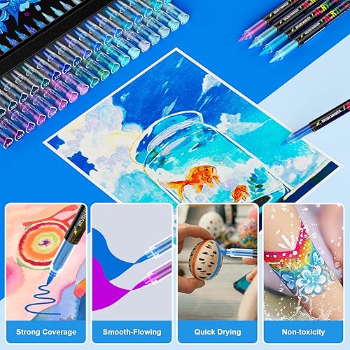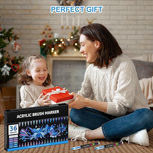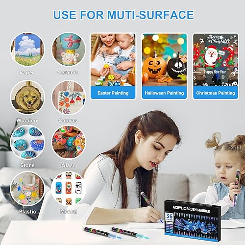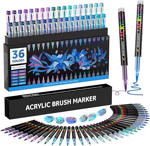 Sonlaryin Feutre Acrylique 36 Couleurs 36 Pièces, Feutre Peinture Acrylique Double Pointe Pinceau, Marqueur Acrylique pour peinture rupestre, bricolage, céramique, verre, toile, bois, Textile - Gris