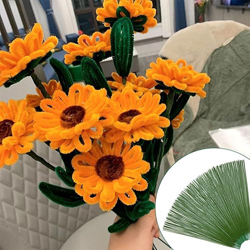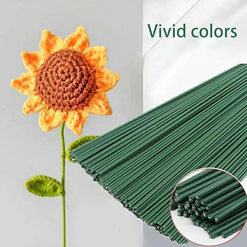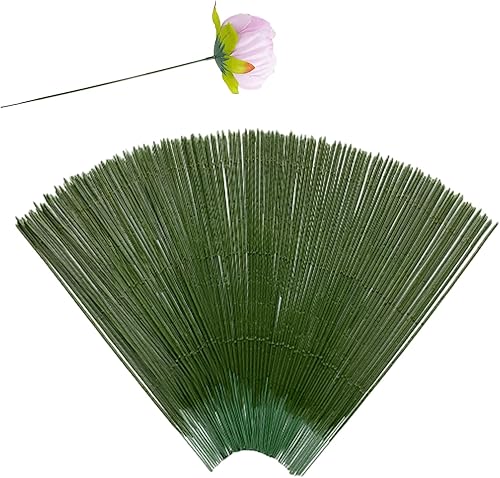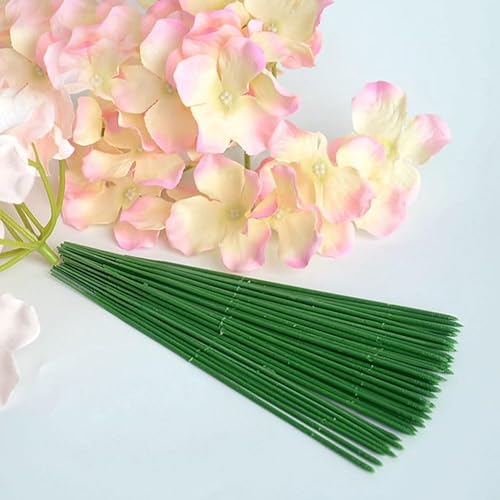 Lot de 100 tiges Florales en Plastique - Tiges de Fleurs artificielles - Fil de Fleuriste Vert - Idéal pour Les travaux manuels, Les Arrangements Floraux et Les Loisirs créatifs - 17 cm