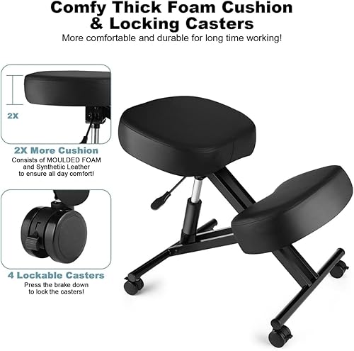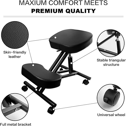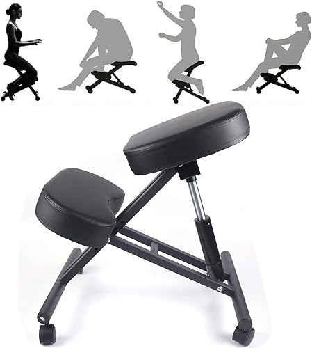 ARBGO Chaise genoux, ergonomique, repose-genoux, tabouret de bureau, hauteur réglable, avec roulettes, améliore votre posture avec un siège incliné - Coussin épais et confortable - Noir
