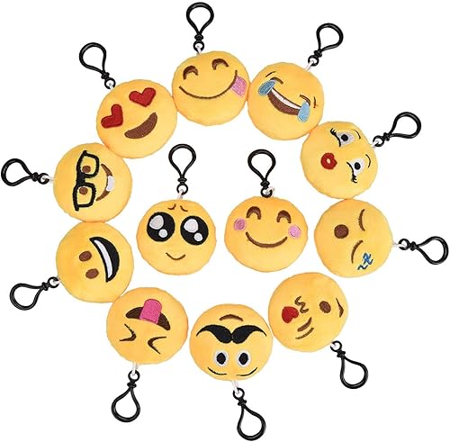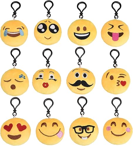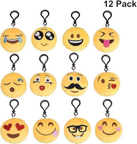 eLander Lot de 12 porte-clés Emoji en peluche - 6 cm - Cadeau d'anniversaire d'enfant - Cadeaux d'invités pour sac à dos - Sac à dos - Pendentif