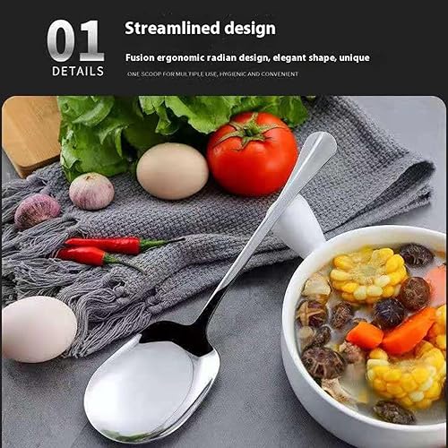 Grandes cuillères pour servir des aliments,Grandes cuillères pour servir | Cuillères extra larges en acier inoxydable | Cuillère de service en métal, couverts de cuisine ergonomiques pour la cuisine,