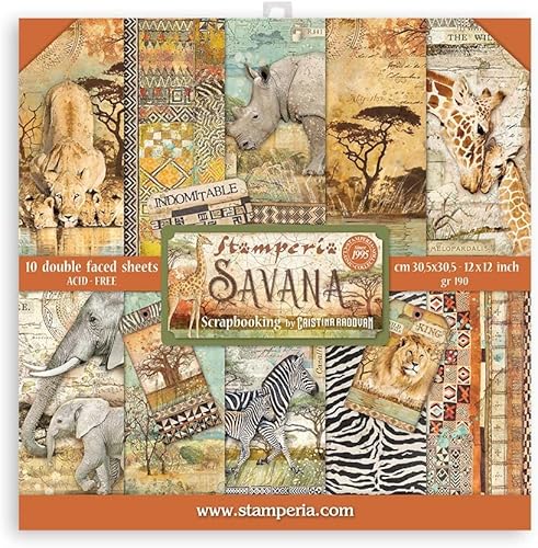 Stamperia International SBBL103 Bloc de scrapbooking Savana Multicolore 30,5 x 30,5 cm