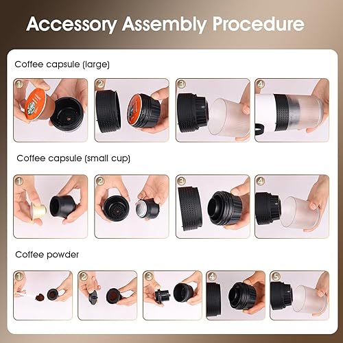 WUCIOA Machine à café Expresso Portable, Machine à café Expresso de électrique 60 ML avec Fonctionnement Pratique, Petite Machine à café de Rechargeable 3 en 1 pour Camping, randonnée(White)