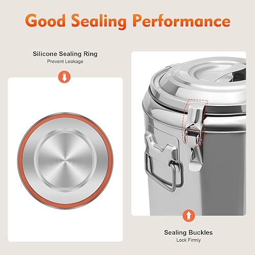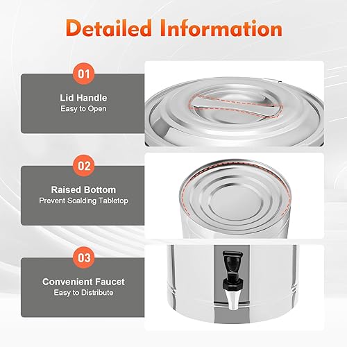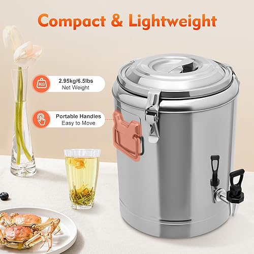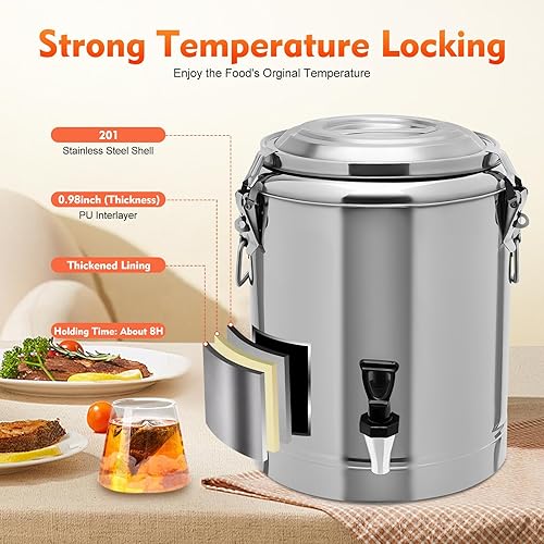 Grande marmite chaude isolée - 20 l - Récipient de transport thermique avec robinet d'écoulement - En acier inoxydable - Avec couvercle et poignées de transport - Pour aliments et boissons