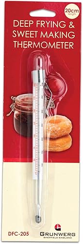 Grunwerg Thermomètre de cuisine en verre et acier inoxydable pour friture et sucreries 20 cm de long, blanc