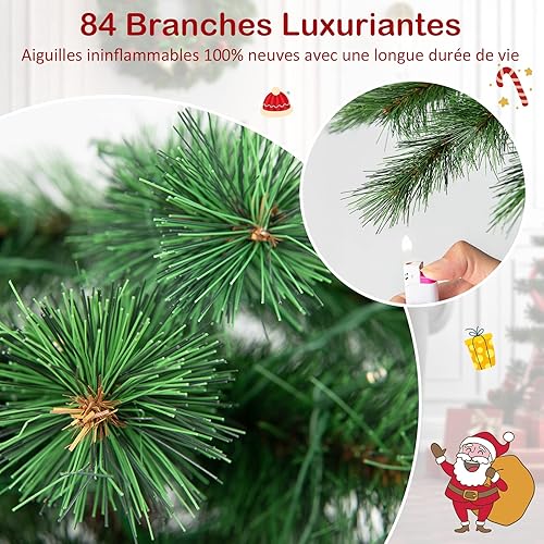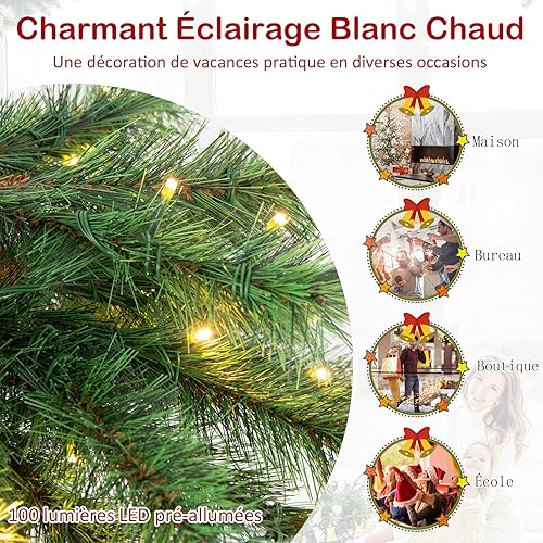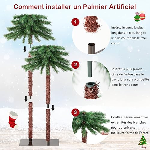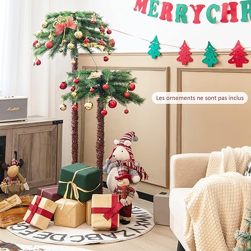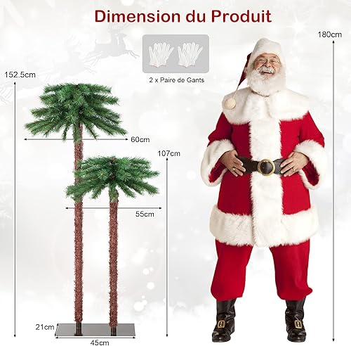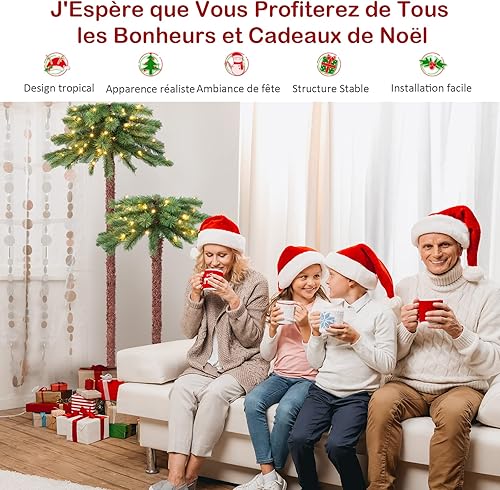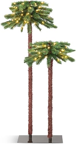 GOPLUS Arbre de Noël Artificiel Illuminé, 107 cm + 152,5 cm, Palmier Tropical à Deux Troncs avec 100 Lumières LED Blanc Chaud, Support Métallique pour la Maison et le Bureau