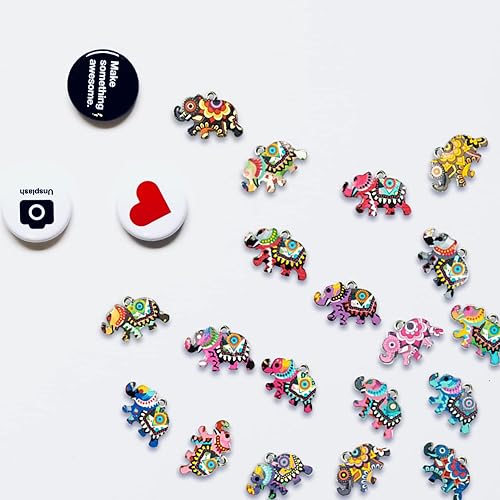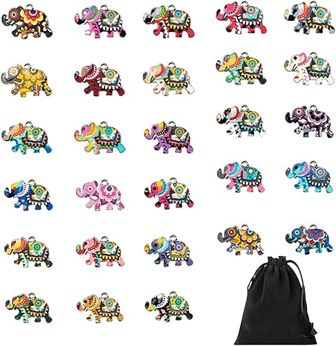 PFLYPF 28 pièces de pendentifs éléphant colorés avec 1 Sac de Rangement Noir, pendentifs en métal, Accessoires de Bijoux à bricoler soi-même, Breloques éléphant en émail, décorations perforées