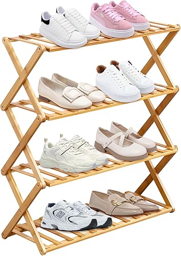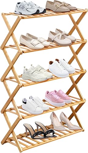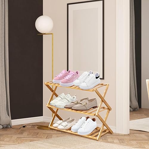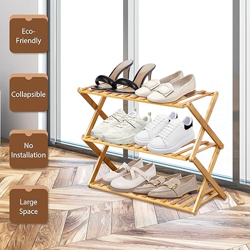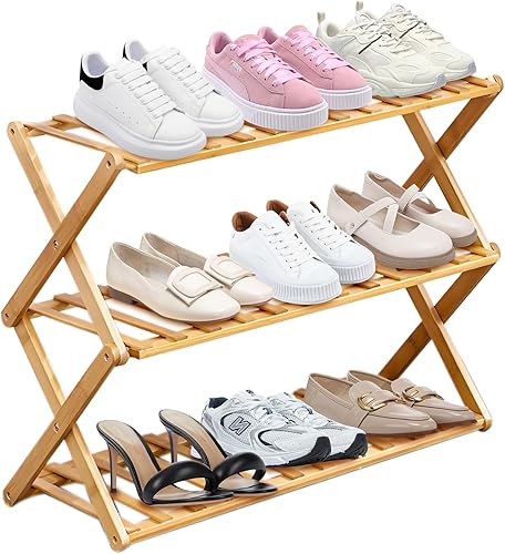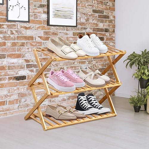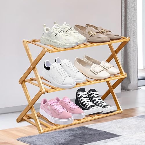 ZYNERY Étagère à chaussures en bois, à 3 niveaux, verticale, pliable, pour chaussures, livres, couloirs, chambres