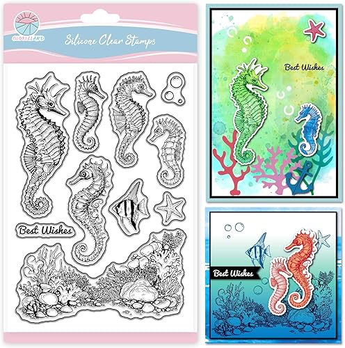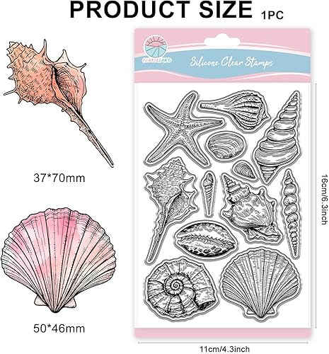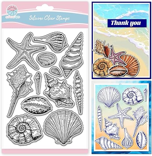 GLOBLELAND Tampons Transparents en Forme de Coquillage pour Scrapbooking Tampons en Silicone en Forme D'Étoile de Mer Tampons Transparents en Forme de Plage D'Été pour la Fabrication de Cartes