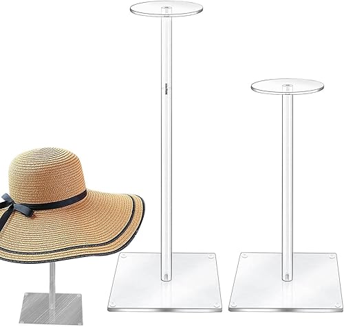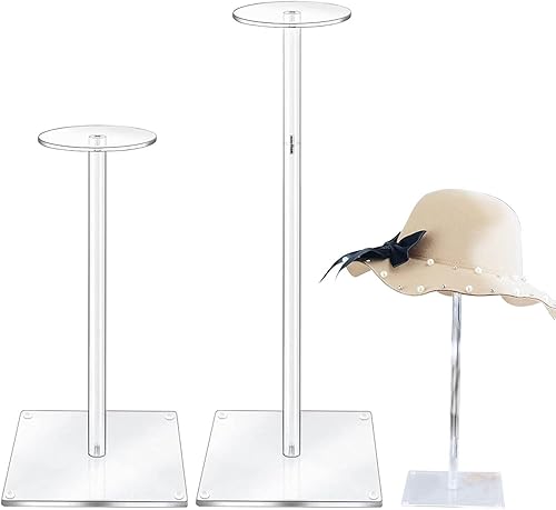 Esncddym Présentoirs à Chapeaux,Support à Chapeaux en Acrylique - Présentoir de perruque en acrylique transparent, hauteur réglable | Organisateur de chapeaux polyvalent avec base stable pour chapeaux