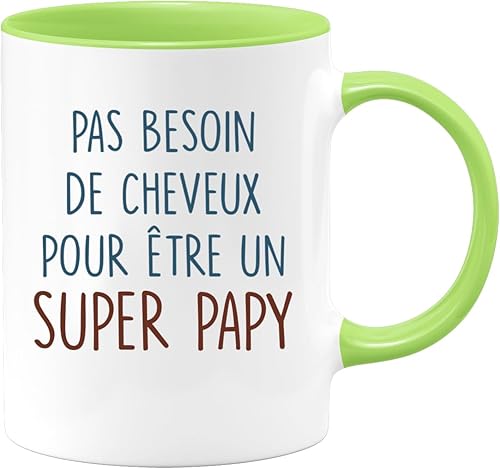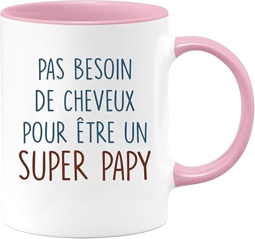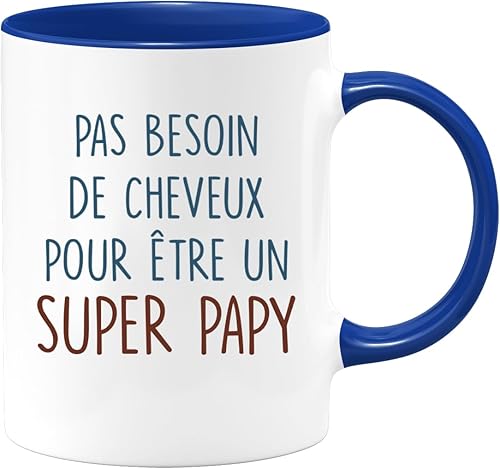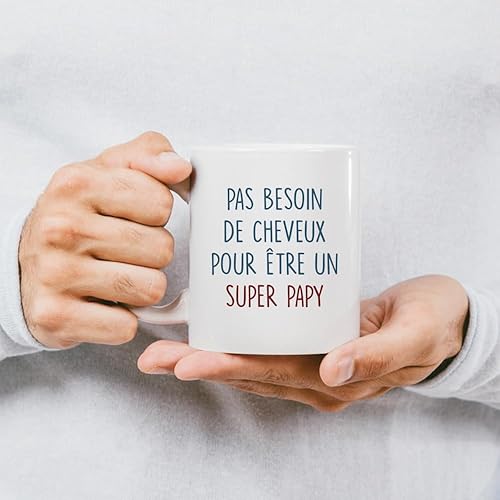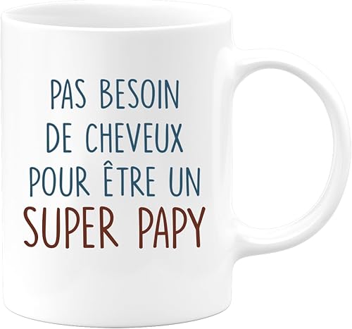 quotedazur - Mug Cadeau Papy - Pas Besoin De Cheveux Pour Être Un Super Papy - Tasse Cadeau Fêtes des Grand-Pères Humour Anniversaire Pépé - Blanc/Céramique