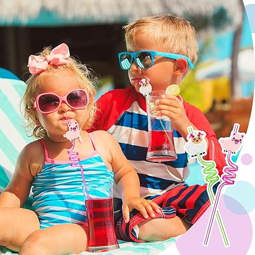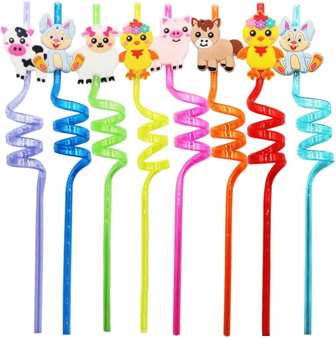 Lot de 16 pailles réutilisables en forme d'animaux de la ferme pour fête d'anniversaire