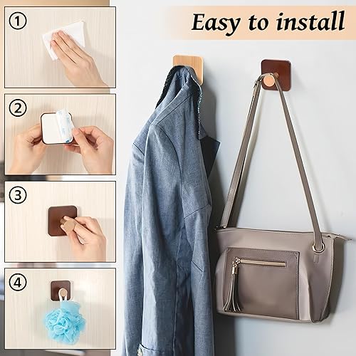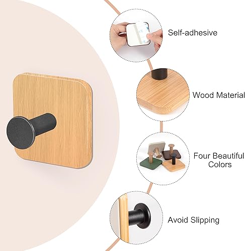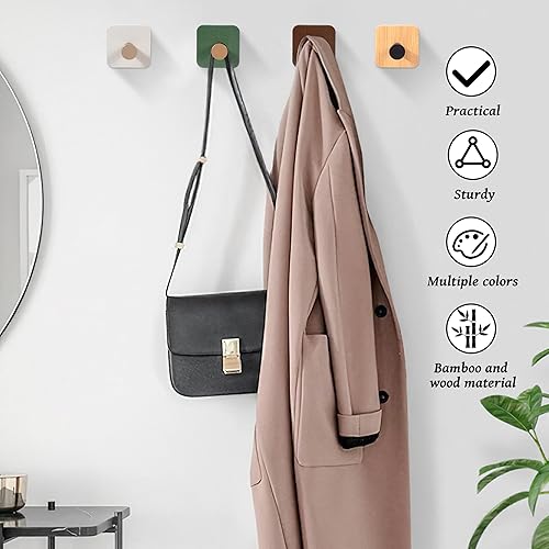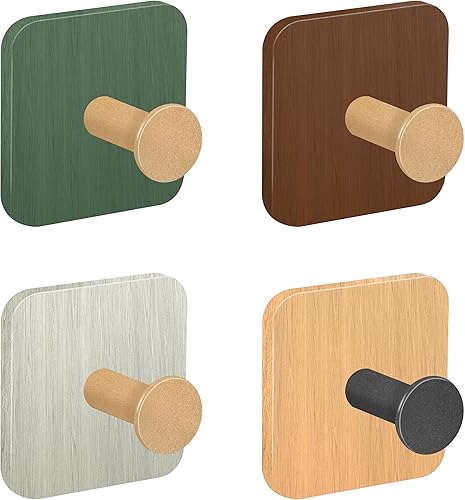 Jeesblsy Crochet Autocollant Bois, Crochets Mural Acier Inoxydable Bambou Sans Perçage, Adhésif Antirouille Porte-serviettes pour Salle Bains Cuisine Toilettes Bureau (4 Pièces)