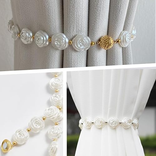 DLPRK Embrasses de Rideau Magnétiques Paquet de 2, Modèle de roses boucle de rideau Retenues de Draperie de 40 cm, Equipé d'une boucle magnétique anti-fuite de lumière