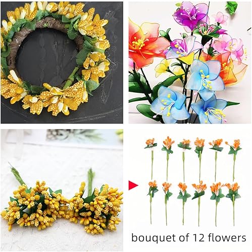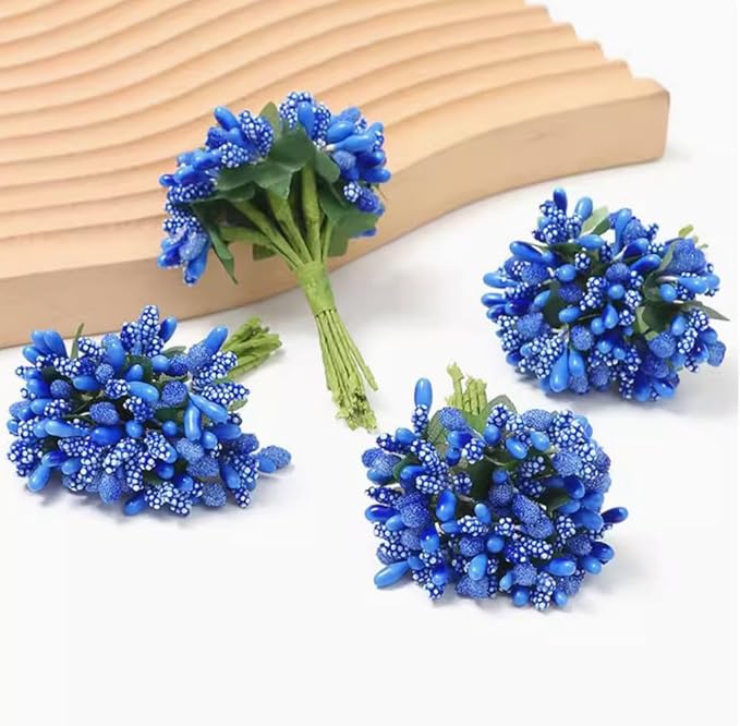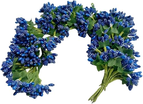 Lot de 144 mini fleurs artificielles Pistil et tige douce, 20 mm, petites baies pour bricolage, mariage, pinces à cheveux, dessus de gâteau, boutonnière de poignet, bagues, couronne, bracelet (bleu