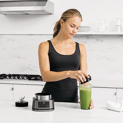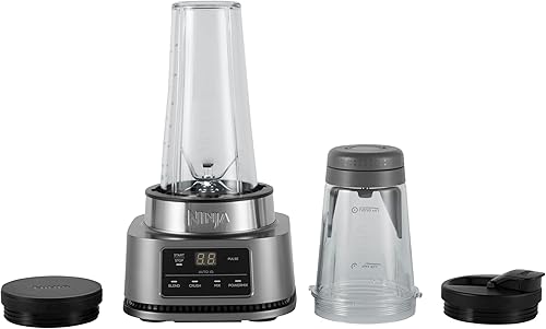 Ninja Foodi Power Nutri Blender 2-en-1, mixeur pour bols de smoothie et boissons glacées, programmes automatiques, gobelet de 700 ml et bol de 400 ml avec palette motorisée, 1100 W, Argent CB100EU