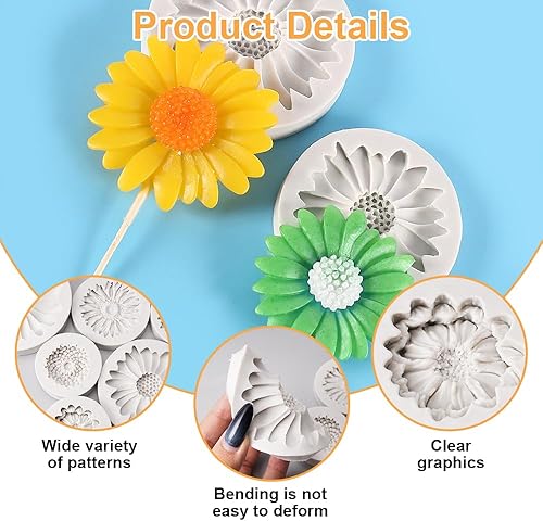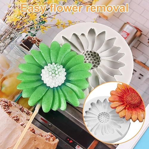 6 Pièces Moule en Silicone Fleurs, Moules en Silicone en Forme de Fleur Marguerite, Moules en Silicone 3D Réutilisables pour les Roses, pour Fondant Gâteau Chocolat Bonbons Décoration de Gâteaux