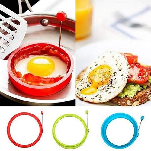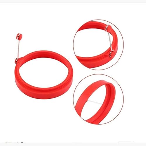 Delleu-Moule rond en silicone anti-adhésif pour œufs au plat, œufs Bénédicte, omelettes, pancakes, sandwichs du petit déjeuner, etc. Red