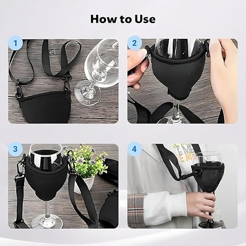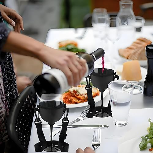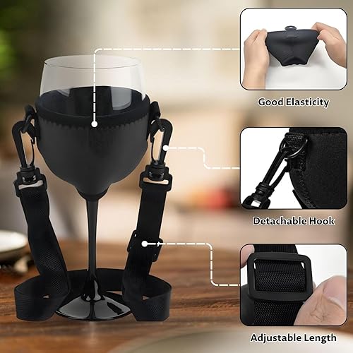 Lyivisk Lot de 2 porte-verres à vin à porter autour du cou, cadeaux portables, porte-verres à vin, pour fête, anniversaire, mariage, exposition (noir)
