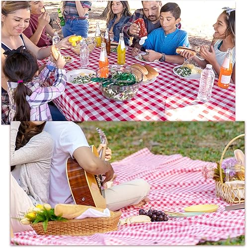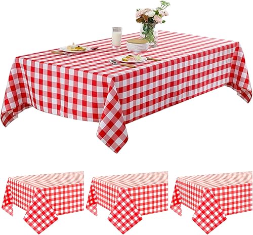 Cisolen 4 pièces Nappe jetable Vichy Rouge et Blanc Nappe à Carreaux 130 cm x 220 cm rectangulaire Nappe pour fête Noël Mariage Pique-Nique Anniversaire décorations Halloween