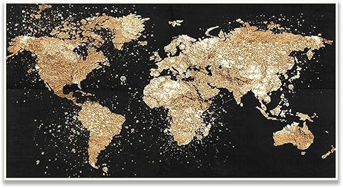 DCIDBEI 85x45CM DIY Broderie Diamant 5D Or Noir, Diamond Painting Carte du Monde Peinture par numéro Paysage, Cristal Chambre Bain Mur Autocollant Décor Loisirs Créatifs