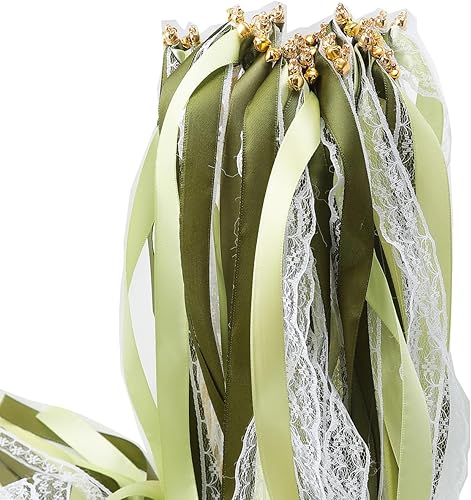 Pmnzdy Wedding Wands Lot de 30 baguettes avec clochettes, dentelle et baguette de fée en soie pour mariage, anniversaire, fête de vacances Vert