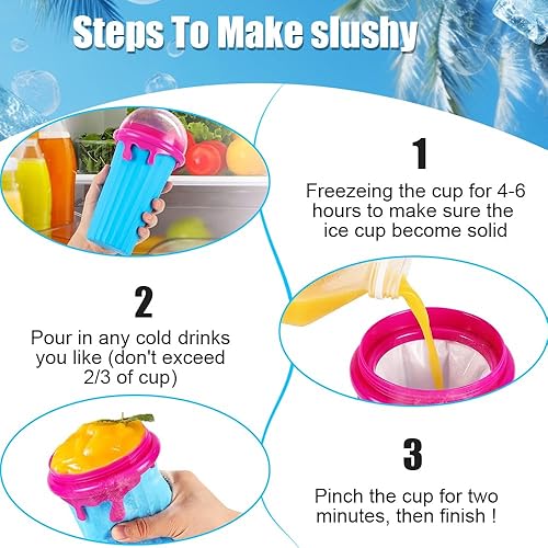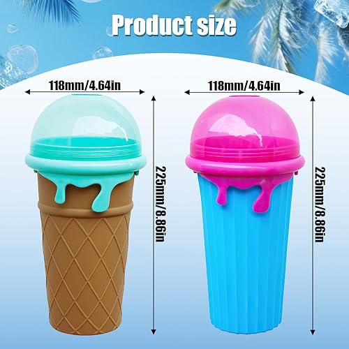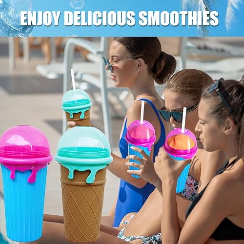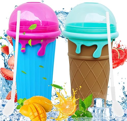 LUFEIS Slushy Maker Cup, Slushy Cup Ensemble 2 Pièces, 500ml Frozens Squeeze Cup en Silicone avec Paille et Cuillère 2 en 1, Quick Frozen Magic Cup Slushy pour Faire de la Glace soi-même