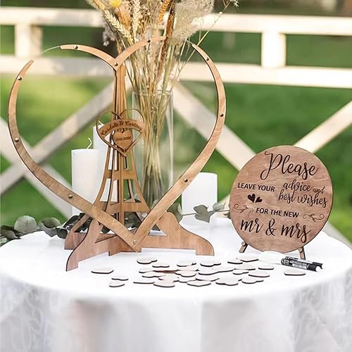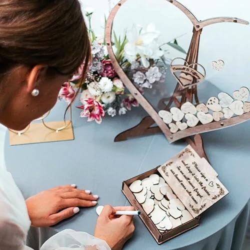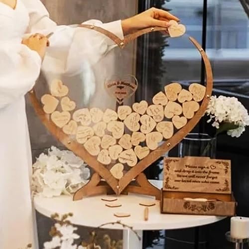 Alternative au livre d'or de mariage personnalisé, livre d'or personnalisé en forme de cœur transparent, boîte d'invités en bois en forme de cœur