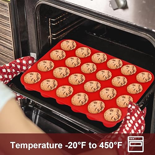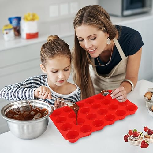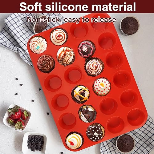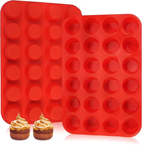 2 Pièces Moules à Muffins en Silicone, Moule Cupcake Muffins pour 24 Moules, Moule Mini Muffins Silicone, Antiadhésifs Moule Muffins, Passe au Lave-vaisselle, pour Cupcakes, Gâteaux (Rouge)
