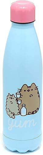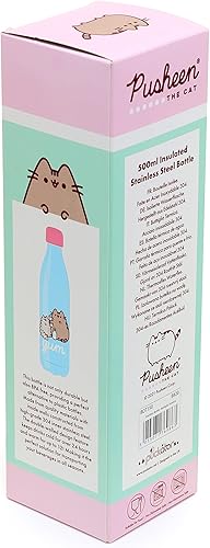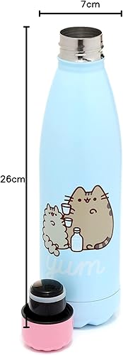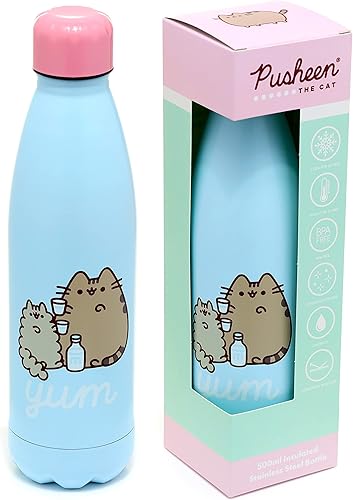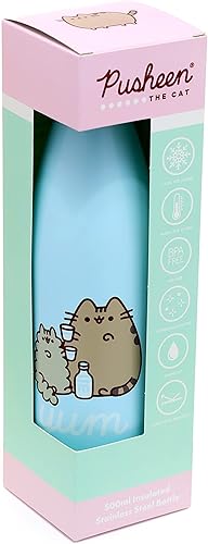 Bouteille Isolée (Gourde) 500ml en Acier Inoxydable pour Boissons Chaudes ou Froides Chat Pusheen Foodie, Bleu Ciel, Gris, Noir, Blanc, Rose
