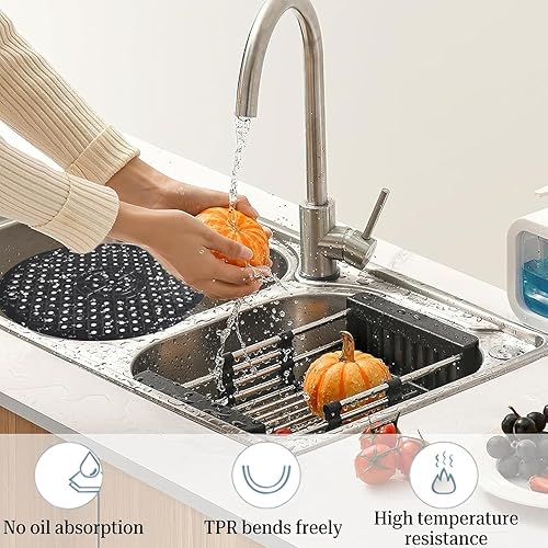 AzureRay Tapis d'évier antidérapant en silicone, Très épais, découpable,design nid d'abeille – Protection évier cuisine, tapis fond évier – Idéal pour vaisselle, frui (Ronde)