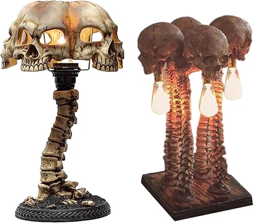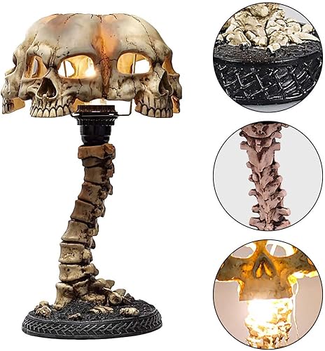 Statue de tête de mort à LED pour décoration de table de bar, veilleuse en résine, accessoire de crâne d'horreur pour maison hantée, décoration de fête avec LED lampe de bureau pour vacances ou