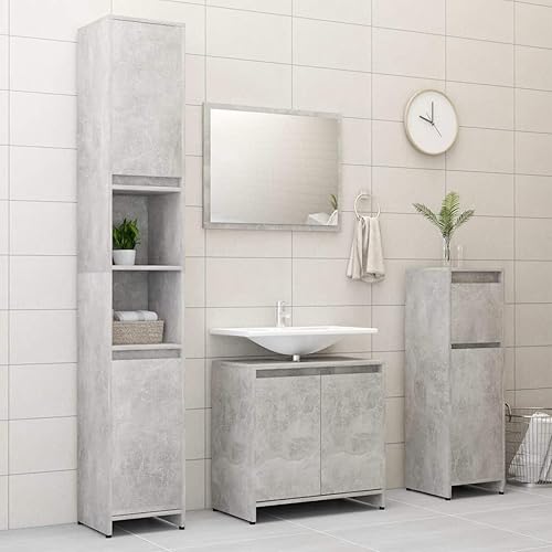 ShGaxin Armoire de salle de bain, meubles de salle de bain, meubles d'armoire, petite armoire, meuble de salle de bain auxiliaire, aggloméré, gris béton, 30 x 30 x 95 cm
