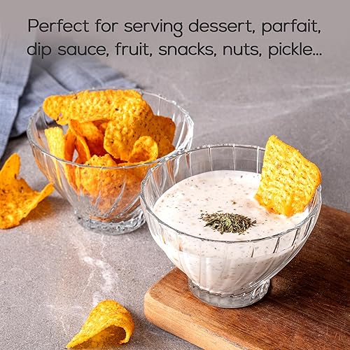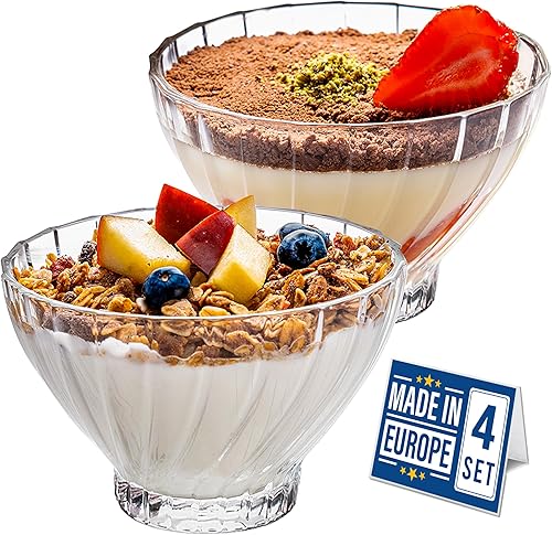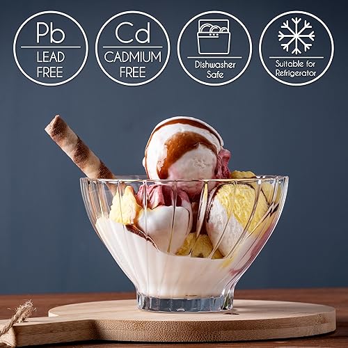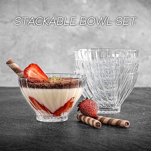 CRYSTALIA Premium Bols à Dessert en Verre, Bols en Verre 290ml SANS PLOMB Bol à Crème Glacée en Verre Verres à Dessert Bols de Service pour Crème Glacée Sundae Bols Empilables Bols de Service à Fruits