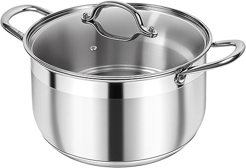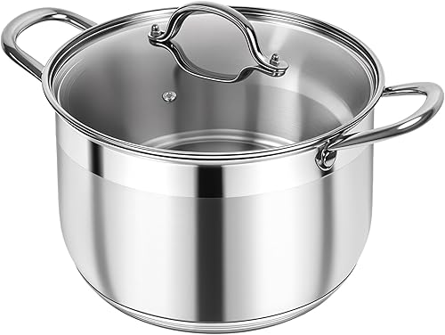 Kirecoo Marmite en acier inoxydable – Marmite robuste de 12 litres avec couvercle visible pour pâtes, soupes, spaghettis, grande marmite antiadhésive à fond épais, batterie de cuisine pour mise en