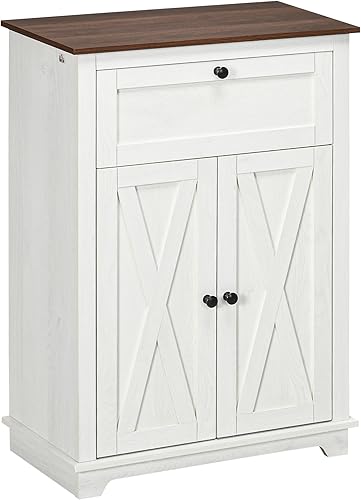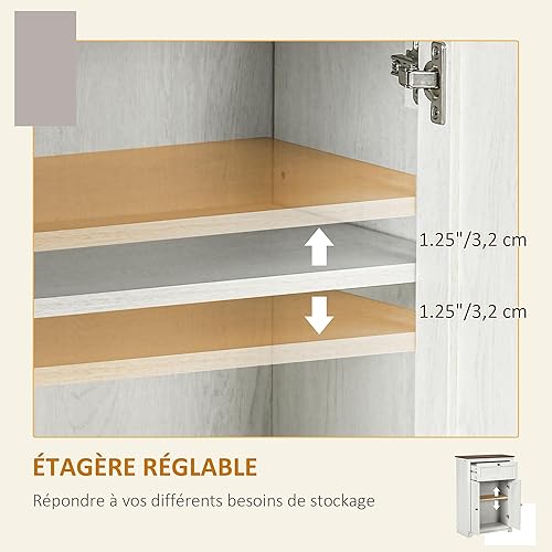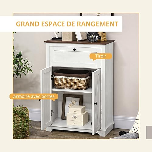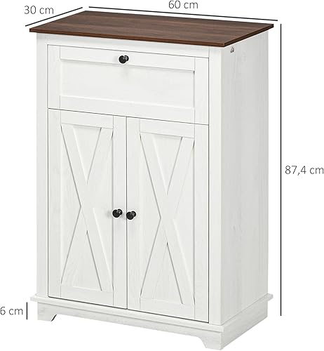 HOMCOM Buffet de Cuisine Multi-rangements 2 Portes avec étagère réglable, 1 tiroir, Design Campagne, pour Salon, Chambre et Cuisine, 60 x 30 x 87,5 cm, Blanc