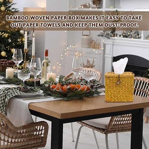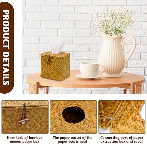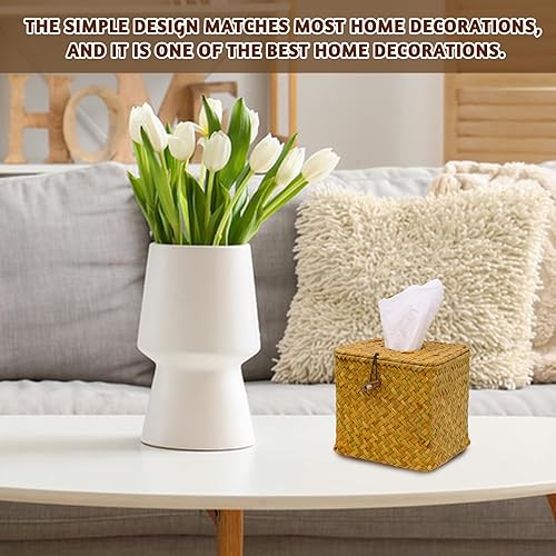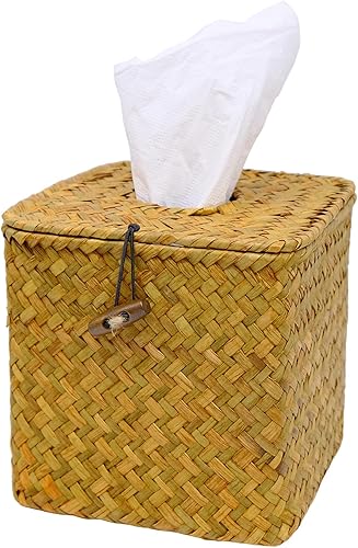 INHEMING Boîte à Mouchoir en rotin Distributeur carré, Boîte à Mouchoirs Carré en Seagrass Tissées Nature pour Maison, Bureau, Voiture (14 x 14 x 14 cm)