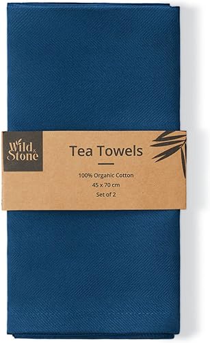 Wild & Stone | Lot de 2 torchons de cuisine en coton bio | Tissage à chevrons | Bleu océan