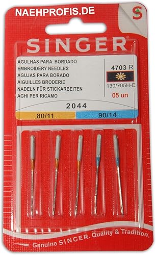 Singer Aiguilles pour Broderie Numéro 2044 Type 130/705H - E En Résistance 80/11 Et 90/14