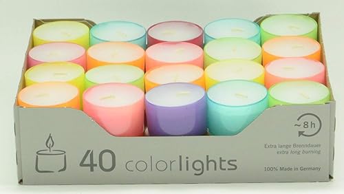 40 Été Bougies à Chauffe-Plat en Acrylique Multicolore env. 7–8 Heures, qualité Professionnelle