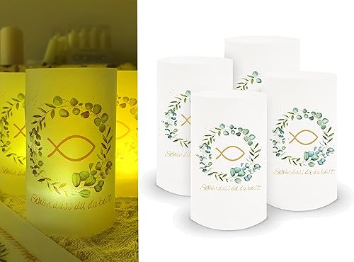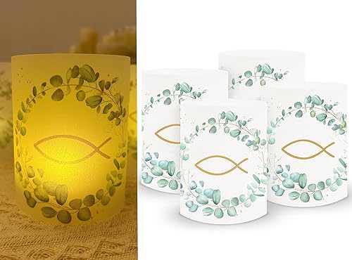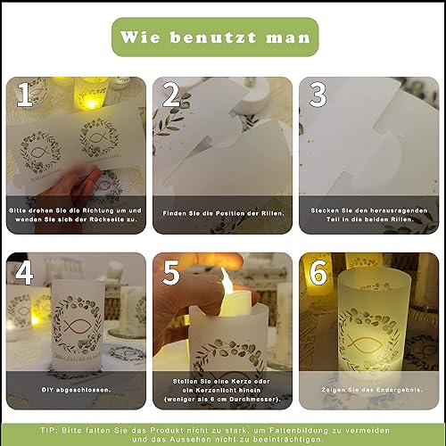 Sugeru Lot de 16 photophores décoratifs de table d'anniversaire | mariage, communion, baptême, confirmation, convient pour bougies chauffe-plat ou bougies LED | 27 x 10 cm | Décoration de baptême |