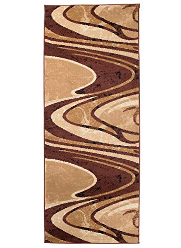 TAPISO Dream Tapis de Passage Tapis Couloir Long Entrée Salon Chambre Descente de Lit Bureau Ado Design Moderne Marron Beige Motif Vagues Ondes Poil Court Fin Doux Lisse Résistant 120 x 200 cm