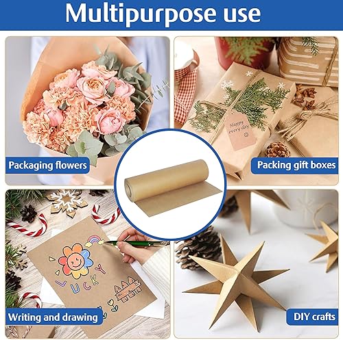 Sudnsadaks Papier Kraft Rouleau, 40cm × 20m Cadeau Kraft Rouleau, Papier Recyclé Naturel, Emballage Brun Idéal pour l'Artisanat, Petits Emballages Cadeaux, Mariage, Anniversaire