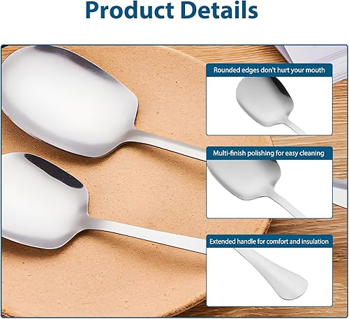Lot de 2 grandes cuillères de service en acier inoxydable - 25,3 cm - Pour la cuisine, la restauration - Idéal pour les salades, les pâtes, les desserts - Pratique pour les buffets, les fêtes de